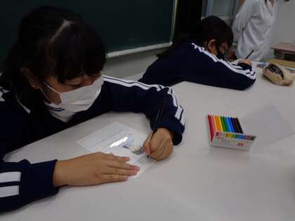 ヘルシー委員会 始動 公開日 2022/10/18 更新日 2022/10/18 特別活動 10月17日(月)、ヘルシー委員会はまず自己紹介カード作りからです。自画像を一生懸命描きました。保健室前に掲示してあるので、ぜひご覧ください。 委員会