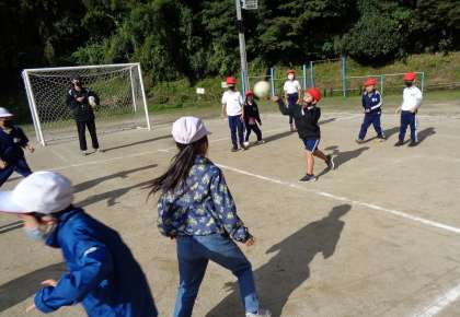 チャレンジ 低学年 公開日 2022/10/21 更新日 2022/10/21 学校の特色ある活動 10月21日(金)、さわやかな朝です。低学年のチャレンジは、運動場で玉投げから始まり、最後はドッジボールをしました。上手投げで玉やボールを投げることに続けて取り組んでいます。 1年 2年