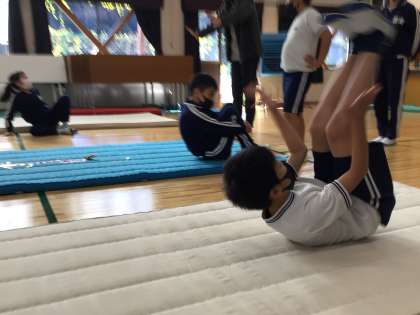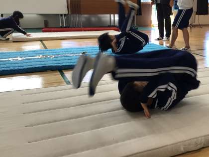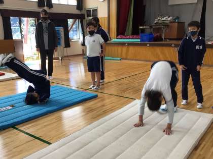 10月24日(月)、3・4年の体育はマット運動です。後転の練習を頑張っています。