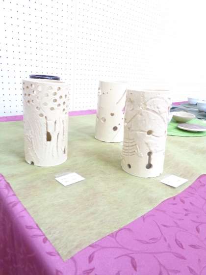 10月23日(日)まで、交流館で行われていた作品展の様子です。この素敵な作品は、地域講師の上田さんに指導していただきました。学芸会でも展示しますので、お楽しみに。