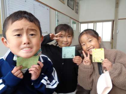 10月27日(水)、1年生が大切に育てた朝顔の種を取って、学校のみんなに配りました。校長室にも3人の子が来ました。ピンクや青や紫の朝顔が咲くそうです。来年の5月くらいに種をまくといいよと教えてくれました。