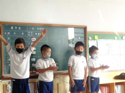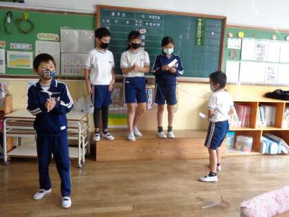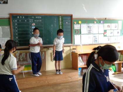 10月28日(金)、昨日の紙トンボをさらに改良している2年生です。昨日より、さらによく飛ぶようになっています。