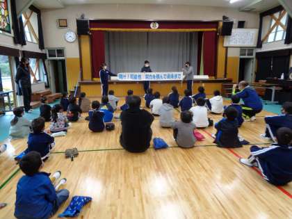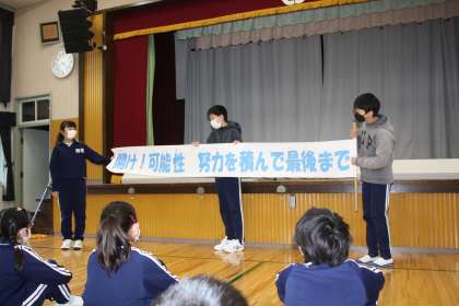 10月31日(月)、全校朝会で6年生が練りに練った学芸会のスローガンを発表しました。写真の通りです。「一人一人が自分の目標を決めてください」とも話していました。19日(土)の本番に、自分がどんな姿だったらいいのか、自分の思いをもって練習に臨んでほしいと思います。