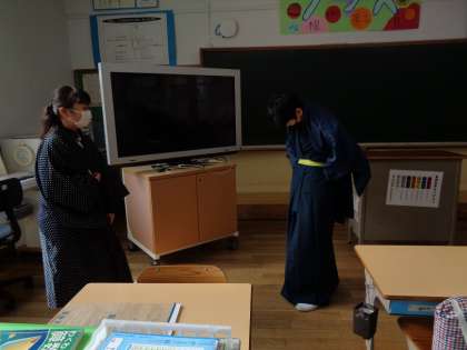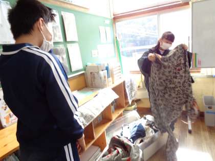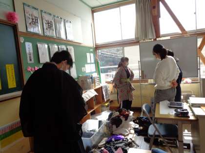 11月4日(金)、正三劇に取り組む6年生。衣装合わせに余念がありません。