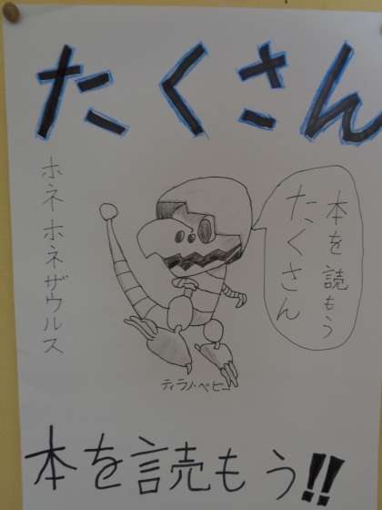ライブラリー委員会が、読書を進めるポスターを作成し、廊下に掲示しました。読みたくなる本がいっぱいです。
