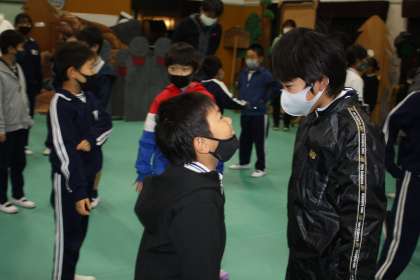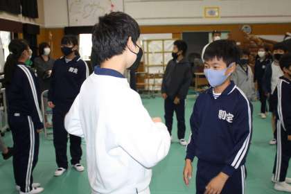 先週、齋藤孝さんのに「コミュニケーション」ついての講演を聞いたので、11月7日(月)の全校朝会で、異学年のペアをつくってのコミュニケーションにチャレンジしてみました。自分の好きなことを紹介して、お互いに笑顔や拍手でリアクションをとるというものです。