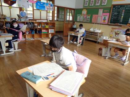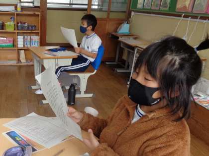 11月7日(月)、教室で台本の読み合わせをしている3年生。歌も歌っています。