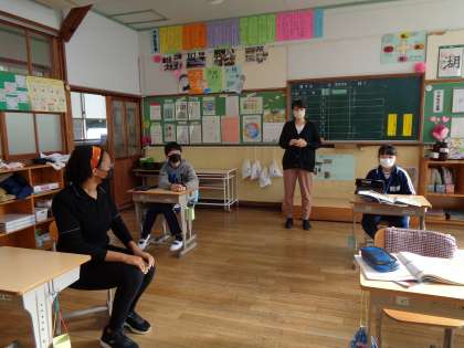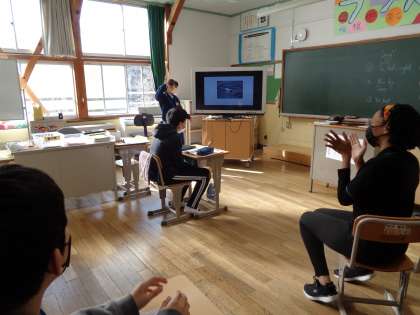 11月8日(火)、ALTの先生と外国語の学習です。食物連鎖に関わる動物について、英語で質問していきました。