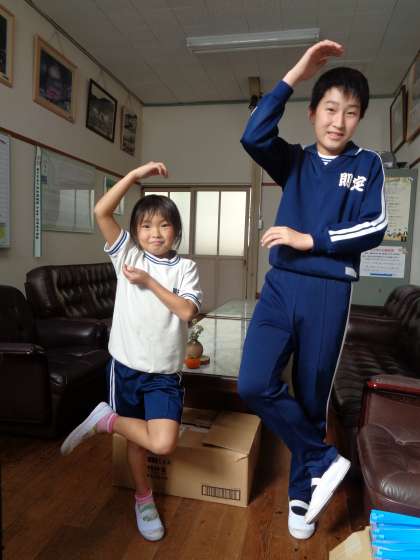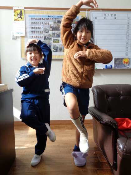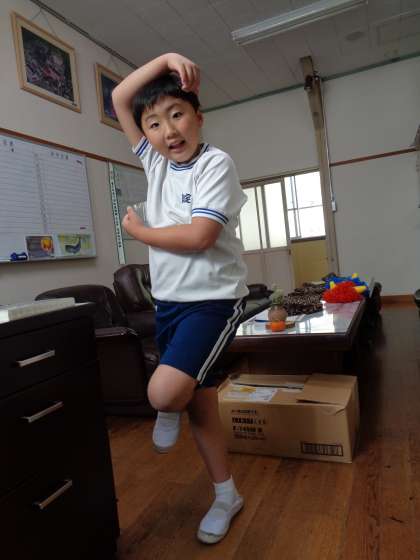 11月の詩は、滑舌が良くなると言う、北原白秋の「五十音」です。暗唱ができた決めポーズは写真のようにしました。ちゃんと決めてくれます。