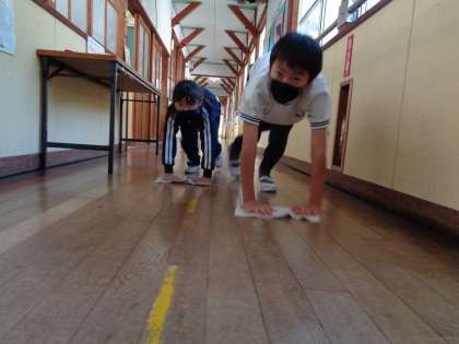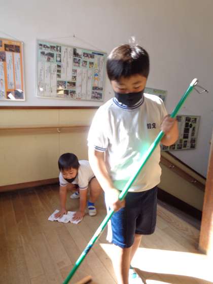 11月10日(木)の縦割り掃除の様子です。高学年と低学年と協力して掃除するいつもの風景です。