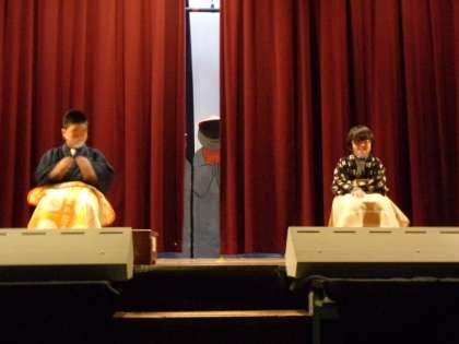 8組は、二人で演じます。言葉や動きもしっかりと覚えました。二人ともとても大きな声が出ています。