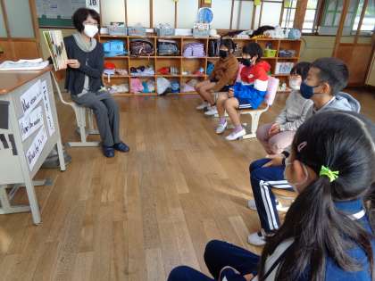 11月17日(木)は、ハグまーまさんの読み聞かせでした。朝から、柔らかい朗読の声が各クラスから響きます。