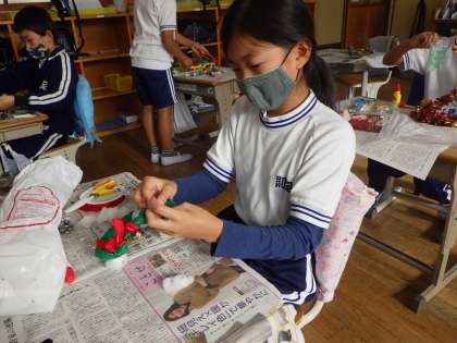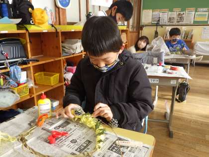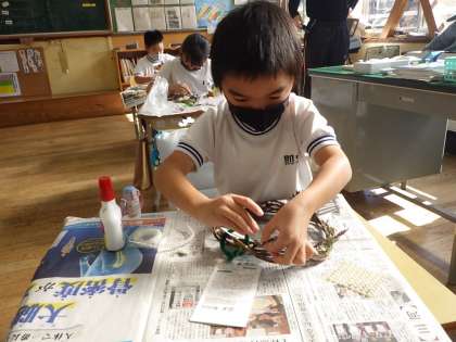 2年 リースづくり&焼き芋 1 公開日 2022/11/25 更新日 2022/11/25 各学年から 11月25日(金)、2年生はつるを使って作ったリースの飾りつけをし、収穫したお芋を焼き芋にして食べました。 まずは、リースづくりの様子です。真剣な表情で、思い思いにリースを作っています。 2年