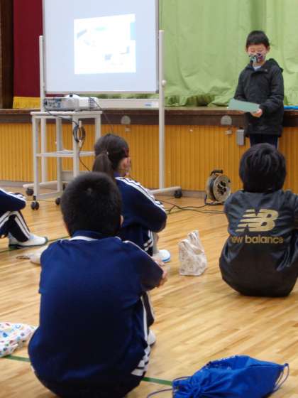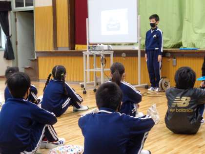 2年 全校集会スピーチ 公開日 2022/11/28 更新日 2022/11/28 学校の特色ある活動 11月28日(月)、全校集会で2年生が「わたしの宝物」というテーマでスピーチを行いました。宝物の写真を見せながら、大切な理由やこれからどうしていきたいかなどを、わかりやすくスピーチしました。 聞き手もしっかり聞いていて、スピーチの後で好きな二つの理由や特に好きなところなどを聞かれると、すらすら答えていました。 2年