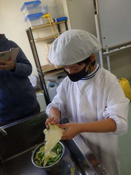 11月28日(月)、3年生は収穫した野菜を調理して、大試食会です。おなかいっはい、おいしくいただきました。