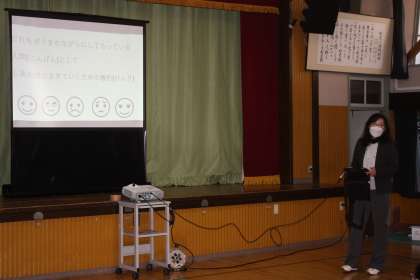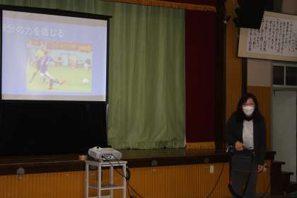 12月5日(月)の全校集会では、人権週間に因んで「人権」についてのお話をしました。「人権」は「だれもが生まれながらにもっている、人間として幸せに生きていくための権利」であることを話し、自分を大切にして生きていくために「自分の力を信じること」、「みんなのため、誰かのため」という思いがエネルギーとなること、そして「感謝、ありがとうの思い」をもつことがさらに自分を高めていくことを、サッカー侍ジャパンの活躍を例にあげて伝えました。