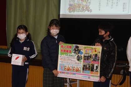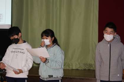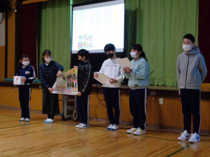 赤い羽根募金 代表委員会 公開日 2022/12/05 更新日 2022/12/05 特別活動 12月5日(月)の全校集会では、代表委員会が「赤い羽根募金」について説明しました。12日(月)〜16日(金)の毎朝、6年生が各クラスに募金を集めにいくそうです。困った人の様々な支援に役立てられる募金です。ご協力ください。 委員会