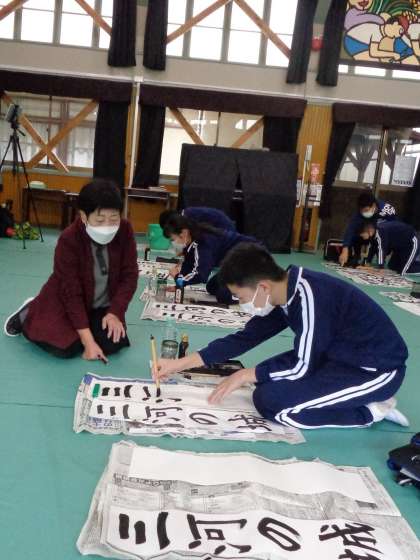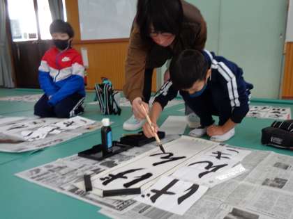 3人の先生方に、一人一人手を取って教えていただけるのは、小規模校ならではの良さです。最初に書いた字と比べながら、「上手になった」とつぶやく子どもの姿が印象的でした。