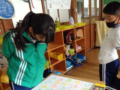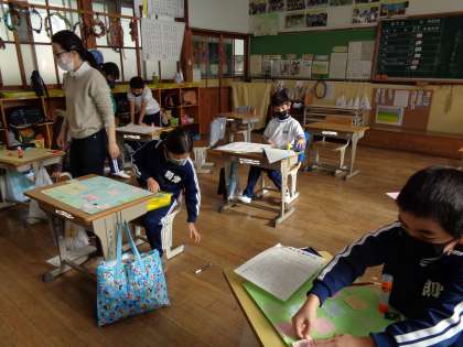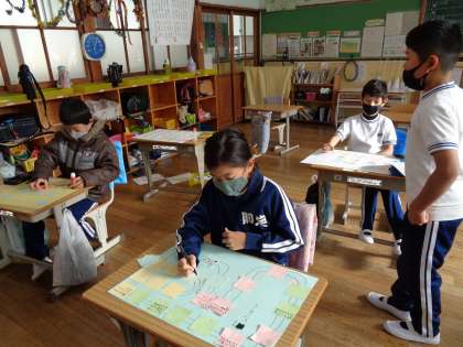 12月5日(月)、2年生のすごろくづくりの様子です。回転ずし、スイーツなど、それぞれテーマに沿って、作っていきます。なかなかゴールに到達できない工夫がされていて、あがることができるか心配になりました。