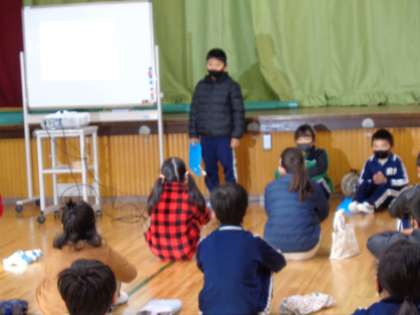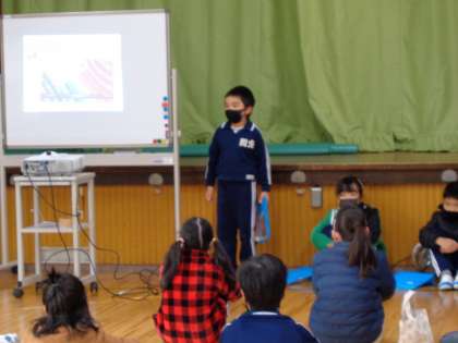 2年 全校集会スピーチ 公開日 2022/12/12 更新日 2022/12/12 学校の特色ある活動 12月12日(月)、全校集会で2年生がスピーチをしました。11月28日に前半の児童が発表したので、後半の子どもたちの発表です。今回も、思い入れのある素敵な宝物の写真を見せながら、説明していました。 2年