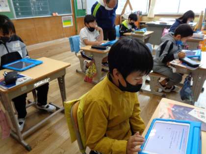 12月13日(火)、4年生はQubnaで、今までの復習をしています。問題文をしっかり読まないと、間違ってしまうので、読み直しながら取り組んでいます。