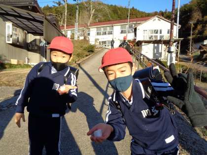 12月15日(木)はとても寒い朝です。寒い朝ならではの子どもたちのお楽しみは、霜をとること。真っ白になった手すりの霜を素手で溶かしながら集めるのが、ここ数年のブームです。