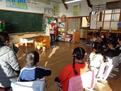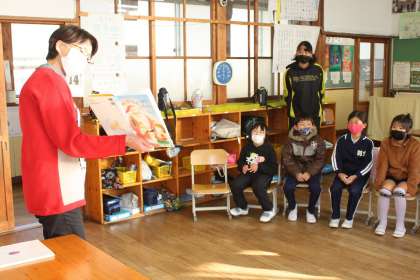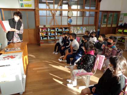 12月15日(木)は、ハグまーまさんの読み聞かせでした。今の季節にぴったりのクリスマスやサンタクロースなどのお話をたくさん聞かせていただきました。
