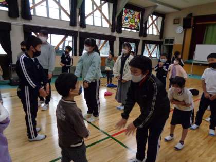 フレンドリー集会 3 公開日 2022/12/20 更新日 2022/12/20 特別活動 続いては、伝言ゲームです。これも縦割りグループで与えられたお題をジェスチャーで伝えていきます。途中でなんだかわからず、首をひねる子もいましたが、2回連続で正解するグループもいて、大きな拍手が起きました。 冬休みも「冬」を楽しもうという元気が出る楽しい集会でした。 フレンドリー委員会のみなさん、ありがとうございました。