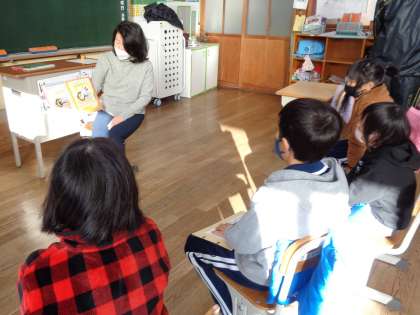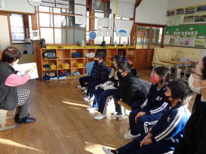 1月12日(木)は、ハグまーまさんの読み聞かせでした。お正月や干支、節分のお話など、季節に合った絵本をいろいろ読んでくださいました。