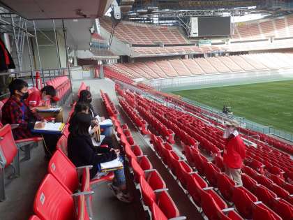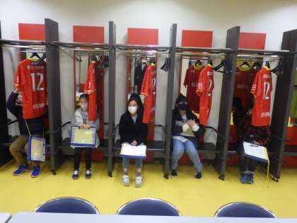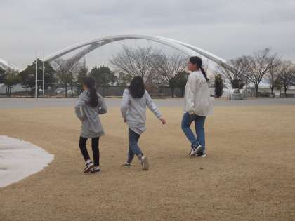 そして、いよいよススタジアムの見学です。座席に座ったり、グランドに降りて芝生を触ったり。最後は、外で思い切り遊んできました。充実した1日でした。