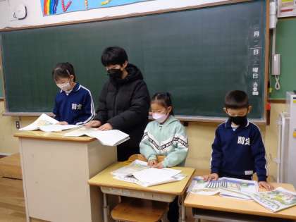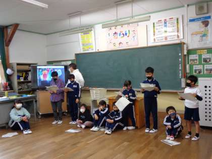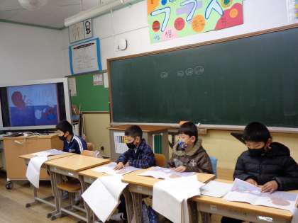 1月16日(月)、今年はより分かりやすいように絵本を映像で大きくしてみてもらう地区もあります。今週から映像に合わせた練習もスタートしました。