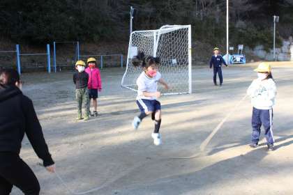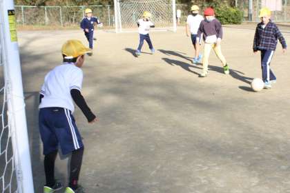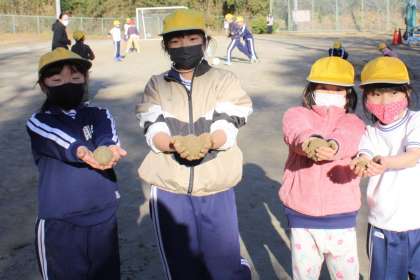 1月17日(火)、ひよこタイムは風もなく、ぽかぽかのいいお天気になりました。運動場に出て、サッカー、縄跳びなどそれぞれ元気よく遊ぶ1,2年生。大きな泥団子を見せてくれる子たちもいました。