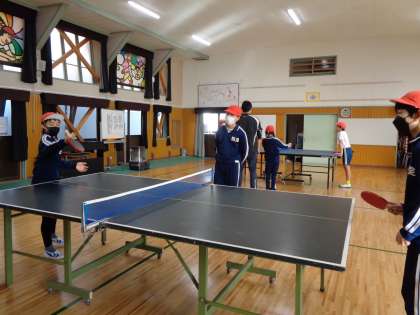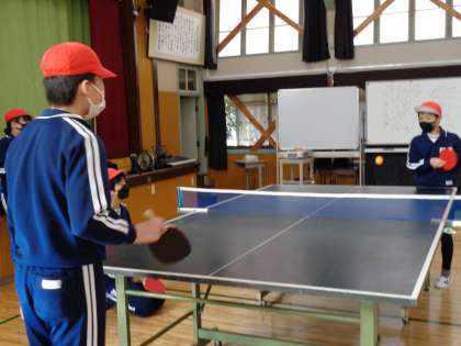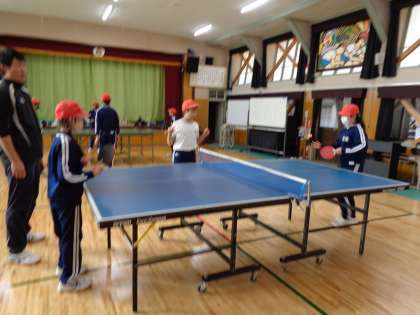 1月18日(水)、5・6年生は、卓球対戦です。ラリーも少し続いています。