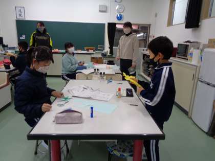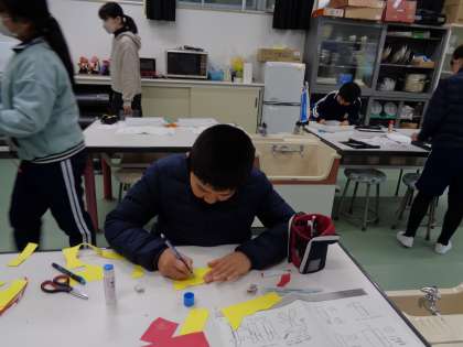 工作・科学クラブ 「羽ばたく小鳥」と「落とし穴ゲーム」 公開日 2023/01/23 更新日 2023/01/23 特別活動 1月23日(月)、工作・科学クラブが最初に作っていたのは「羽ばたく小鳥」です。羽根の付け方で飛んでいる感じが違って見えます。続いては、空き箱を利用しての「落とし穴ゲーム」づくり。頭と手先を使って、工夫して作り上げていきます。 クラブ