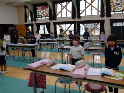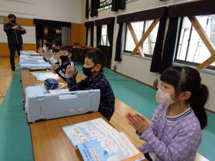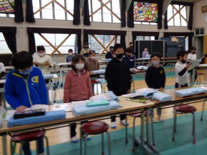1・2年 音楽 リズムにのって 公開日 2023/01/24 更新日 2023/01/24 各学年から 1月24日(火)の低学年の音楽の様子です。「シロクマのジェンカ」を歌ったり、リズム打ちをしたりしました。歌とリズム打ちを同時にすることもできます。 1年 2年