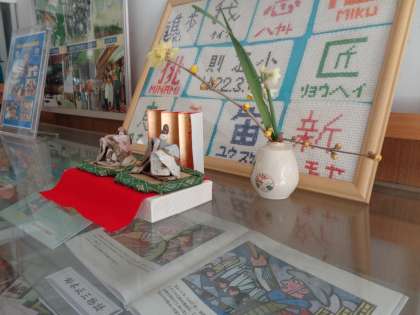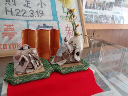 公務手さんが、お雛様と蝋梅を玄関に飾ってくださいました。風が通る、寒い玄関ですが、小さな春がここにあります。