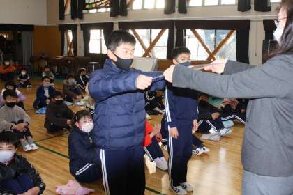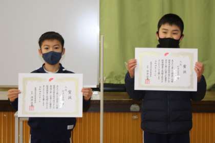 1月30日(月)の全校集会では、夏休みに取り組んだ赤い羽根募金の書道、ポスターのコンクールの表彰と豊田市文詩集「ひまわり」のカットに掲載される作品の表彰を行いました。おめでとうございました。