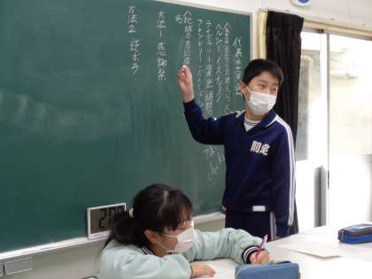 1月31日(火)の代表委員会では、地域の方に感謝するためのキャッチフレーズを相談していました。「地域に感謝するプロジェクト」「地域にお返しプロジェクト」などいろいろ話し合う中で、「地域にお返しプロジェクト」に決定しました。それを「C・・・Chiki O・・・Okaesi P・・・Project」と呼ぶかどうか、そういう考えも出ていましたが・・・。名称が決まっただけで、わくわくします。