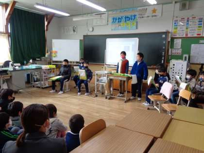 2年生は、1年間生活科で取り組んできたことを発表しました。出来事順に、発見したこと、思ったことなどを、聞き手を見てしっかりと話すことができました。