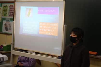 3年生は、栽培活動について発表しました。タブレットの操作も分担して、作り方のコツや食べた感想などをわかりやすく伝えました。