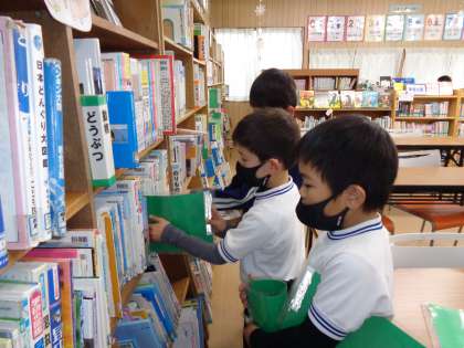 2月10日(金)のわく2も、自分のテーマの本を探す子たちがいます。感想を言うともらえるシールもどんどん増えてきました。現在、今年度の貸し出し冊数は5,562冊です。