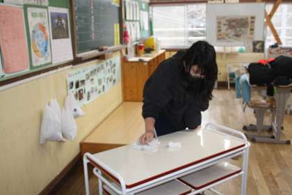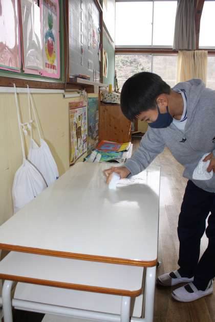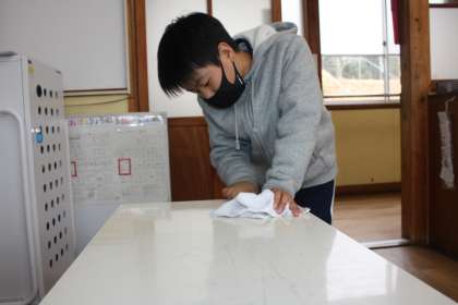 2月13日(月)の委員会の時間の様子です。ヘルシー委員会は、アルボースの補充と配膳台の清掃です。配膳台がぴかぴかになりました。