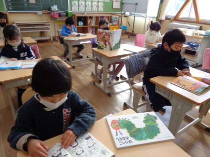 2月14日(火)朝の読書タイム。黙々と本を読み進める子どもたち。