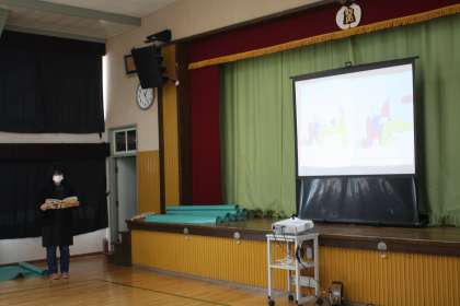 パズルの後は、司書さんが絵本の読み聞かせをしてくださいました。椅子でも、家でも、ネコでもなんでも編んでしまうニットさんのお話です。もしかしたら、星や宇宙も編んでしまいそう・・・とわくわくしました。終わった後、「お城を編んでほしい」と言う子もいました。