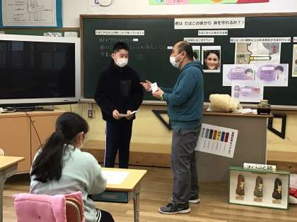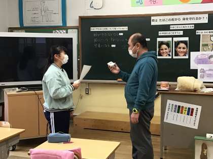 2月13日(月)、6年生の保健の授業では、煙草について学びました。そして、教頭先生に実際に煙草をすすめてもらい、どうするかを一人一人ロールプレイで考えました。自分の健康を守る力をつけたいですね。