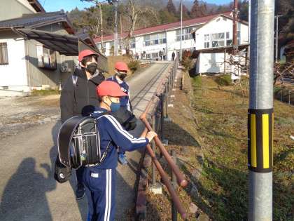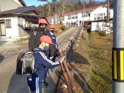 2月20日(月)、暖かい日が増えている気がします。今日も、校門坂の手すりを確認していましたが、「水だあ」ということでした。