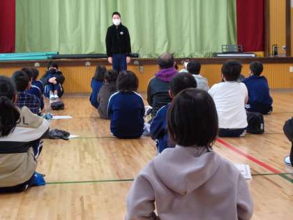 2月20日(月)の全校朝会では、6年生が最後のスピーチを行いました。1年の時の自分と今の自分を比較したり、5年生の時に考えたことを振り返ったりしながら、体験を通して学んだことを自分の言葉でしっかりと話していました。聞く人の心に残るスピーチでした。このスピーチの内容は、学校だよりの次号で紹介します。