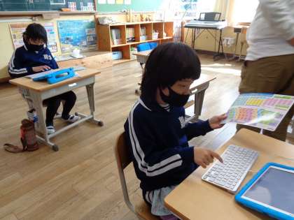 2月22日(木)、3年生はICT支援員さんにワードの使い方を教えていただきました。ローマ字変換ができるように、ローマ字表とにらめっこしながら頑張りました。