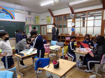2月24日(金)、6年生を送る会のための6年生に送るプレゼントづくりも終盤です。出来上がったグループもあります。心のこもったプレゼントができ上がりそうです。