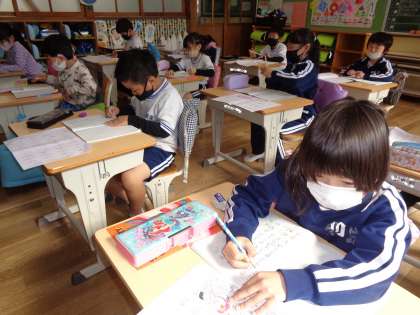 1年 漢字700点テスト 公開日 2023/03/01 更新日 2023/03/01 各学年から 3月1日(水)、1年生は今年習った漢字を全部書く700点テストの直しをしています。間違えた字、上手に書けなかった字を自分で考えて、ノートに練習です。自分で課題を見つけられるからこそ、どんどん上手な字が書けるようになりますね。 1年